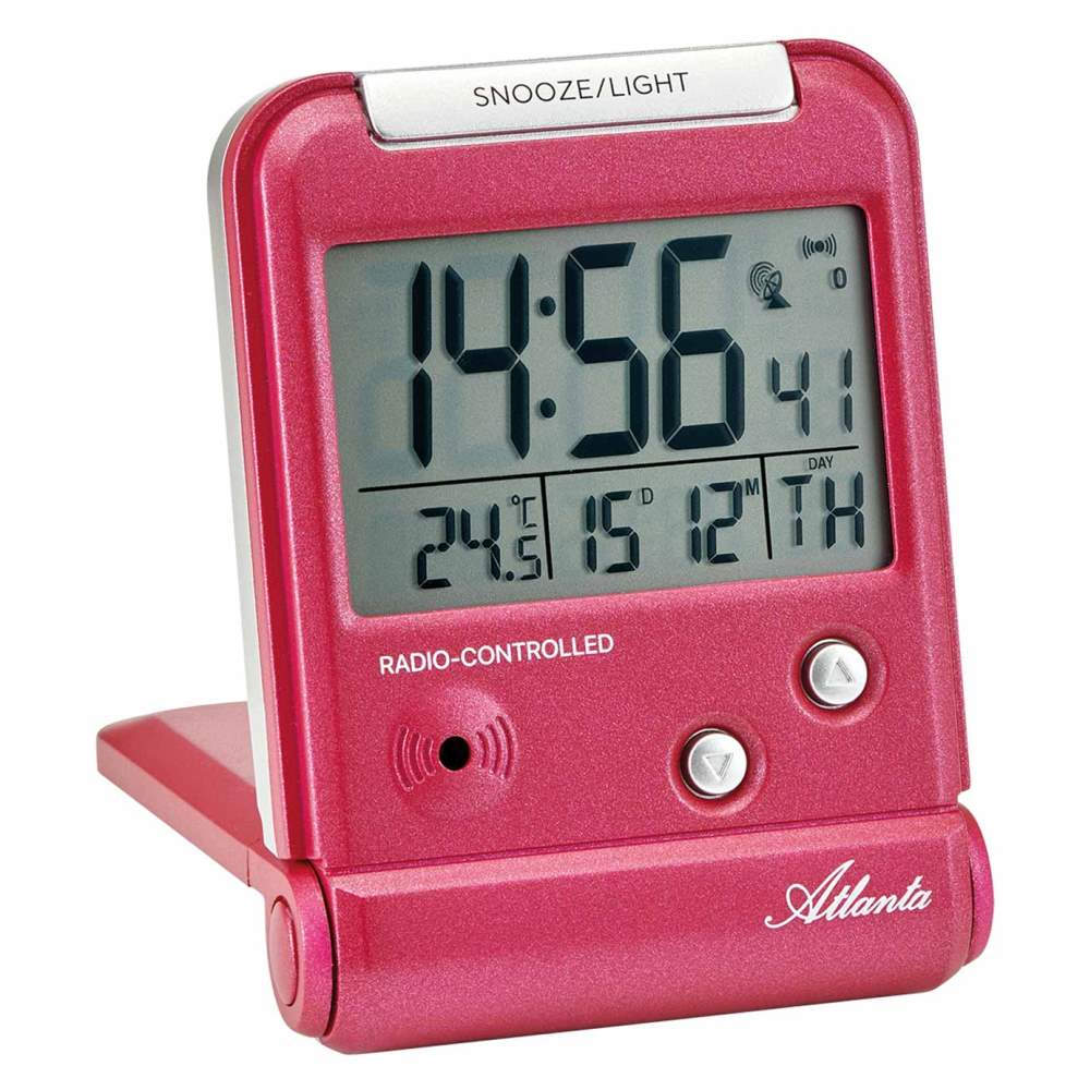• Wekker 1806-1A is een digitale reiswekker in een rode kunststof uitvoering.