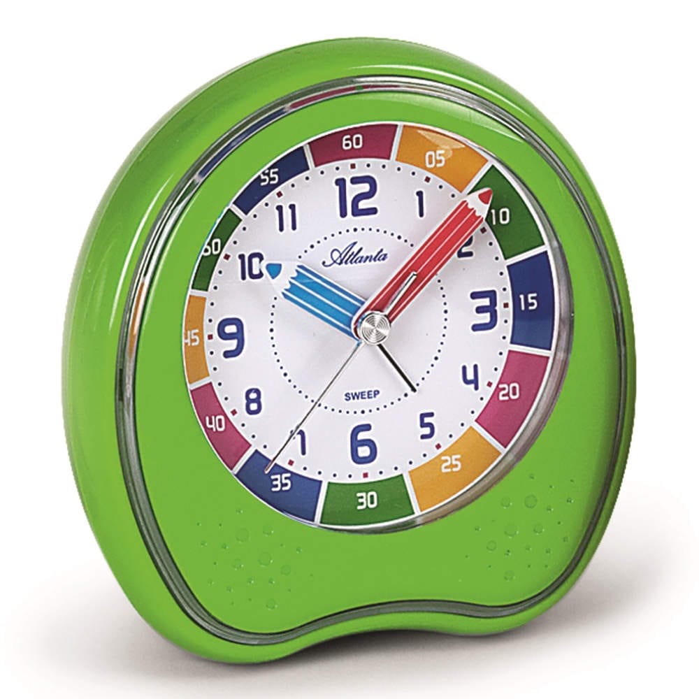 • Op de wijzerplaat is de tijd middels verschillende kleuren ingedeeld, wat tevens kan helpen als ondersteuning bij het leren klokkijken.