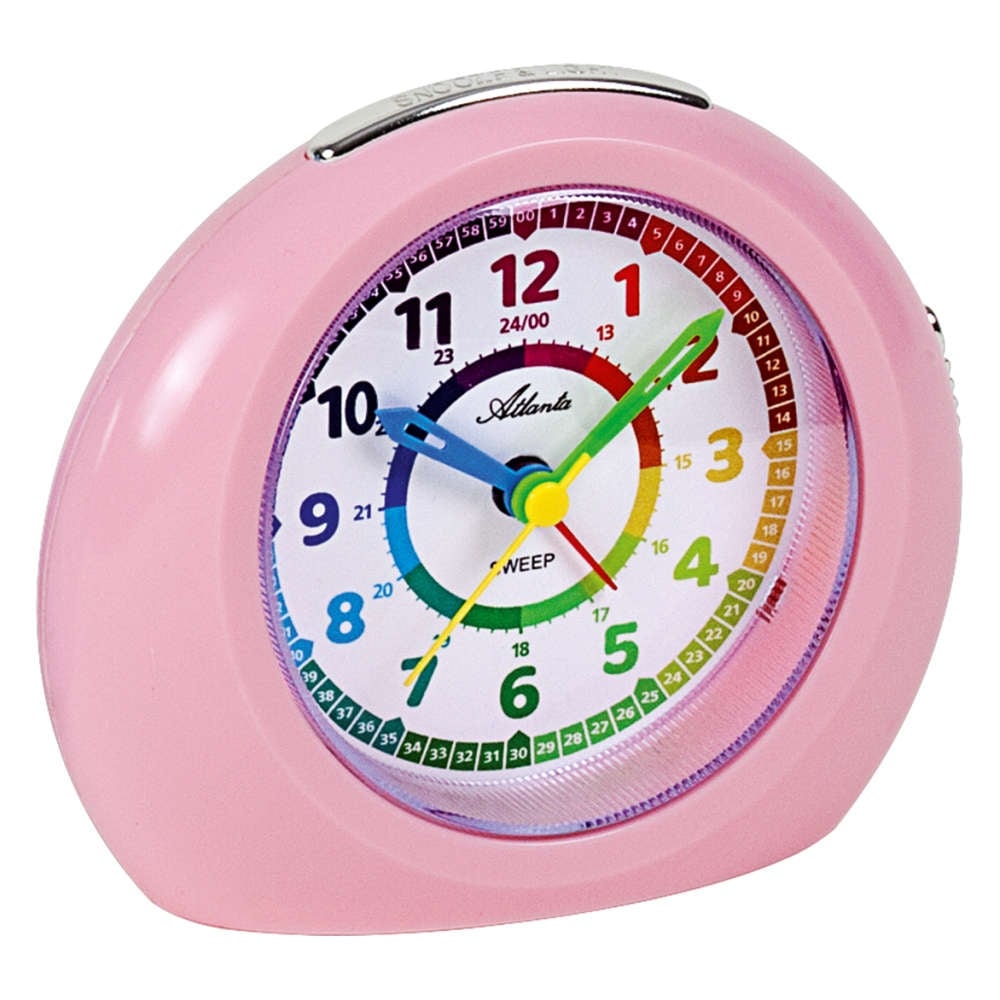 • Wekker 1967-17A is een roze kinderwekker met een speciale wijzerplaat om ondersteuning te bieden bij het leren klokkijken.