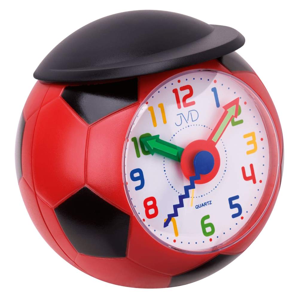 • Wekker SR819-1J is een rode voetbal wekker met een zwarte pet waarmee het alarm is in en uit te schakelen.